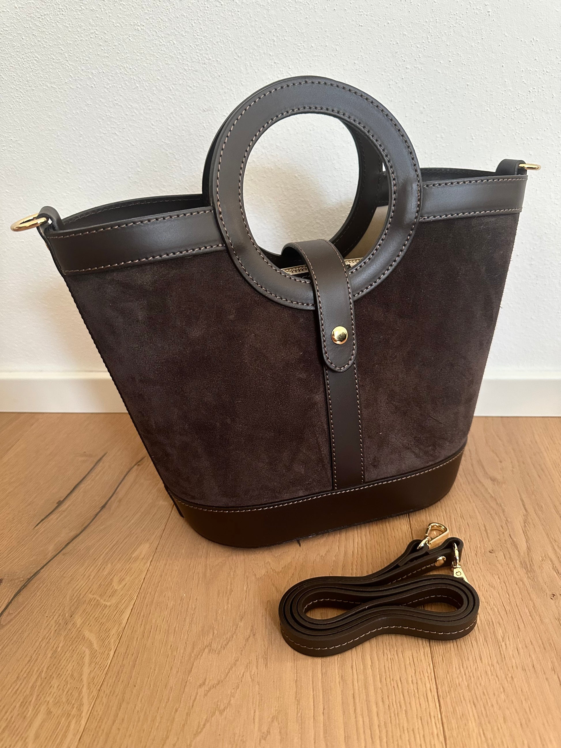 ☀️Borsa in camoscio e vera pelle di vitello liscia Made in italy.