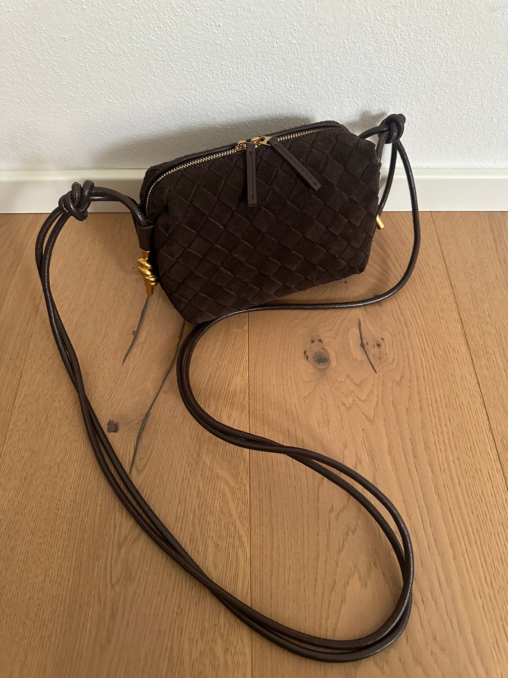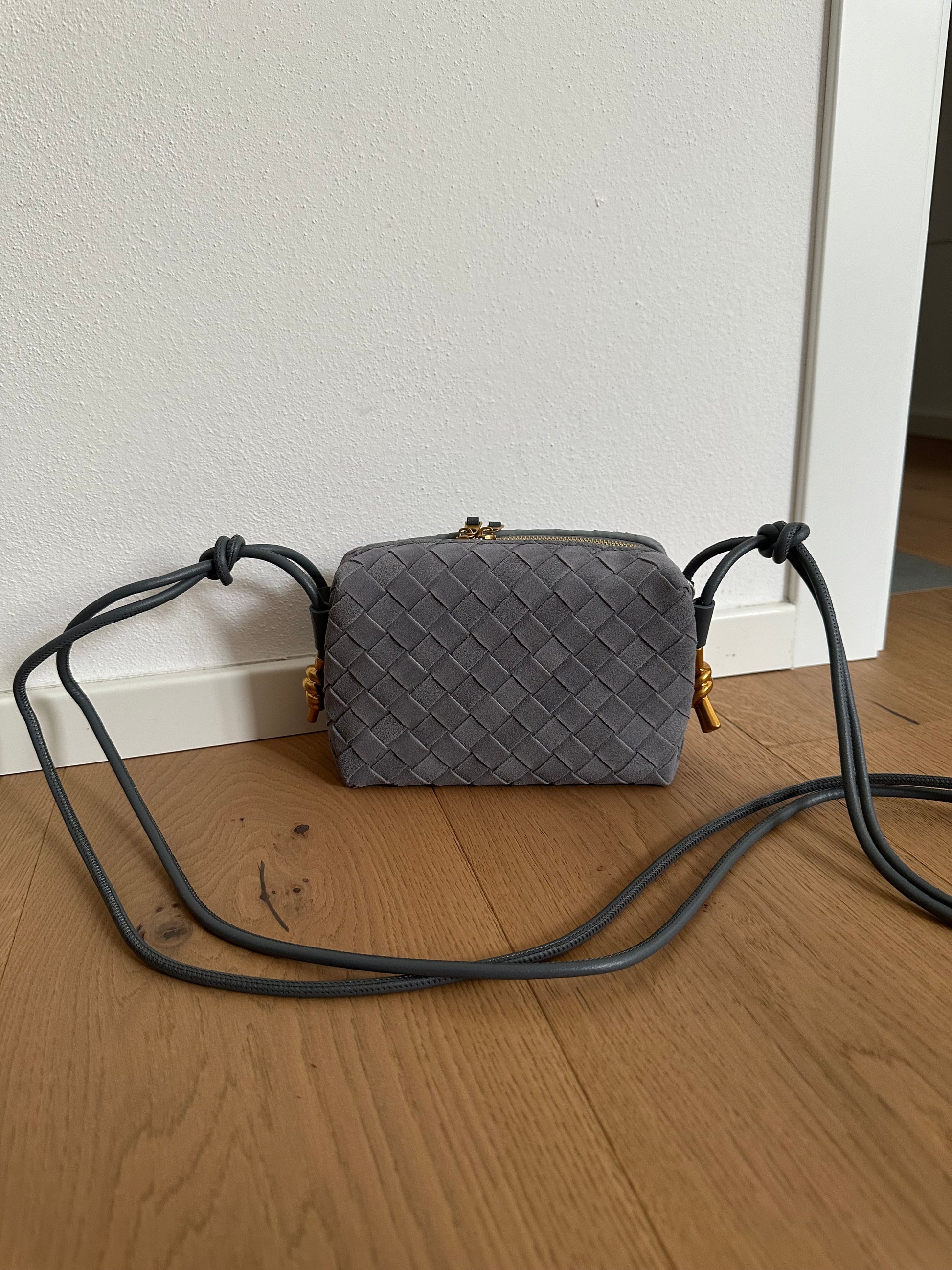 💐Camera bag in vera pelle scamosciata intrecciata realizzata a mano.