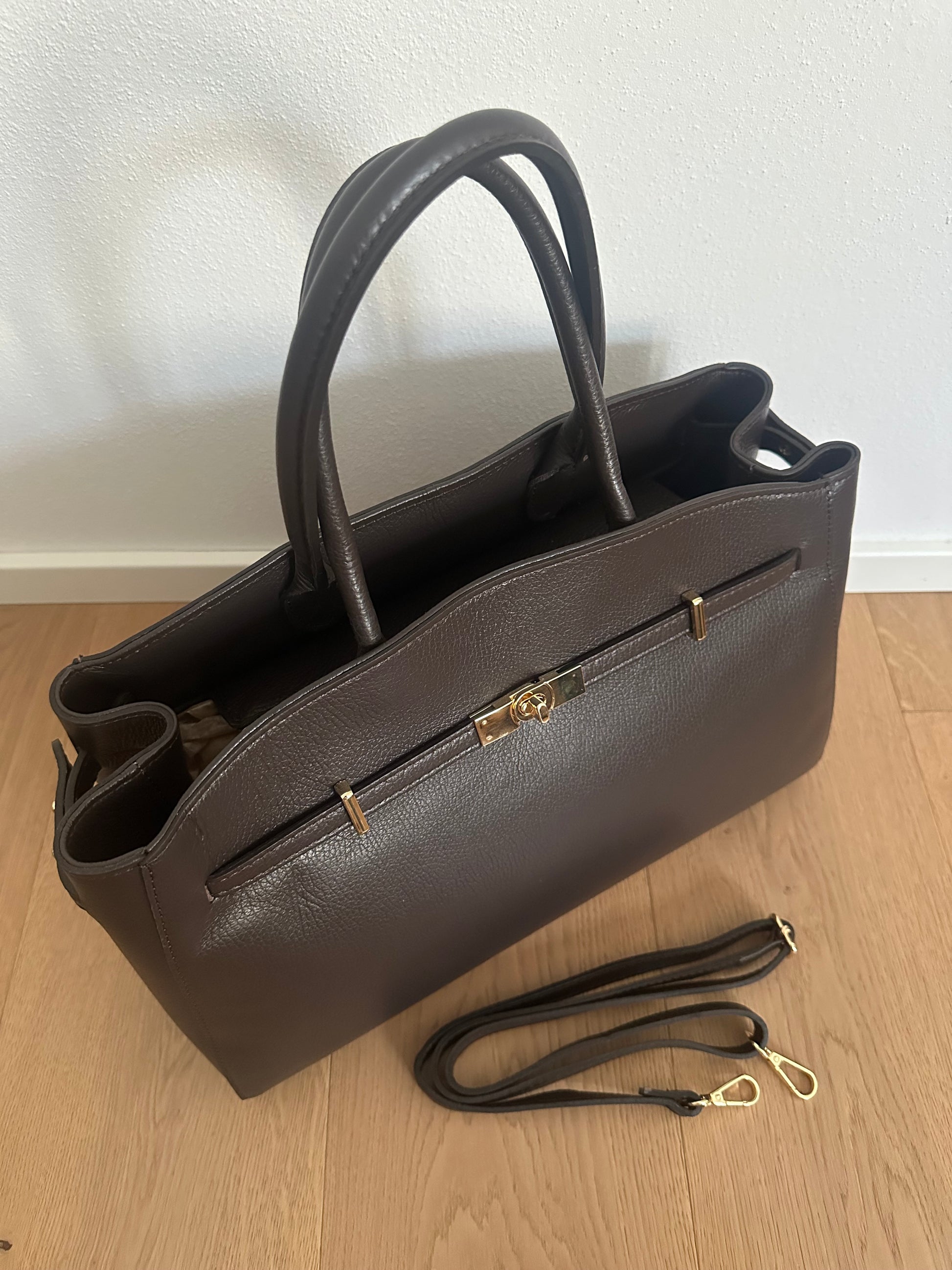 🤎Borsa grande con doppio manico in vera pelle Made in Italy.