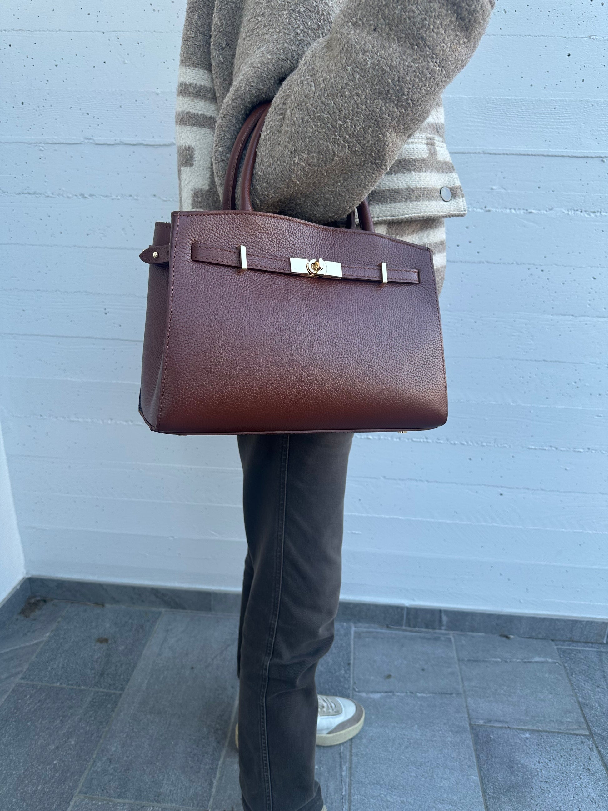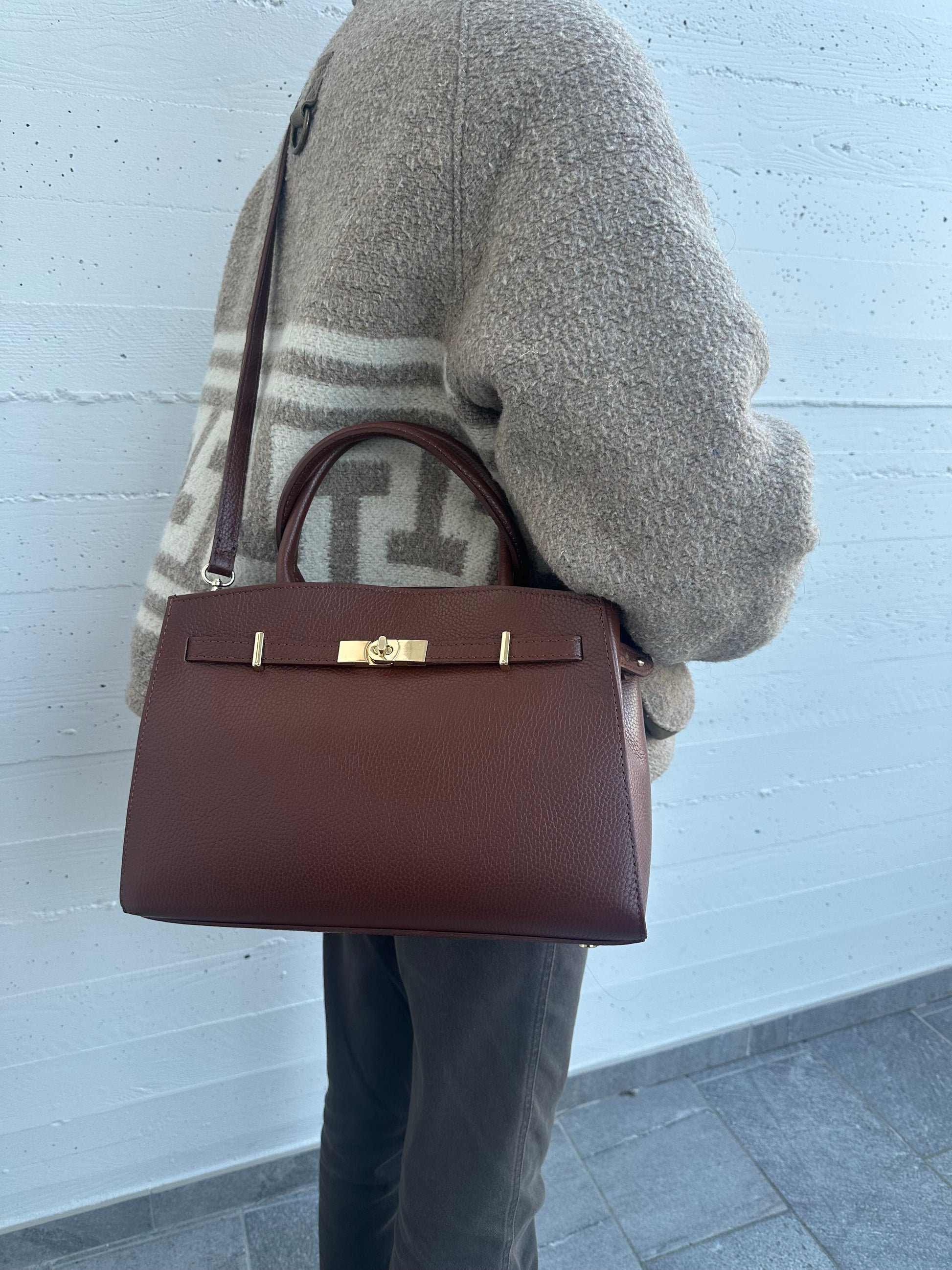 Artigianale e completamente realizzata a mano, dal design classico e elegante é una borsa di misura media senza tempo perfetta per essere usata tutti i giorni come borsa da lavoro o università , ma anche per essere portata con eleganza per aperitivi o eventi più formali.