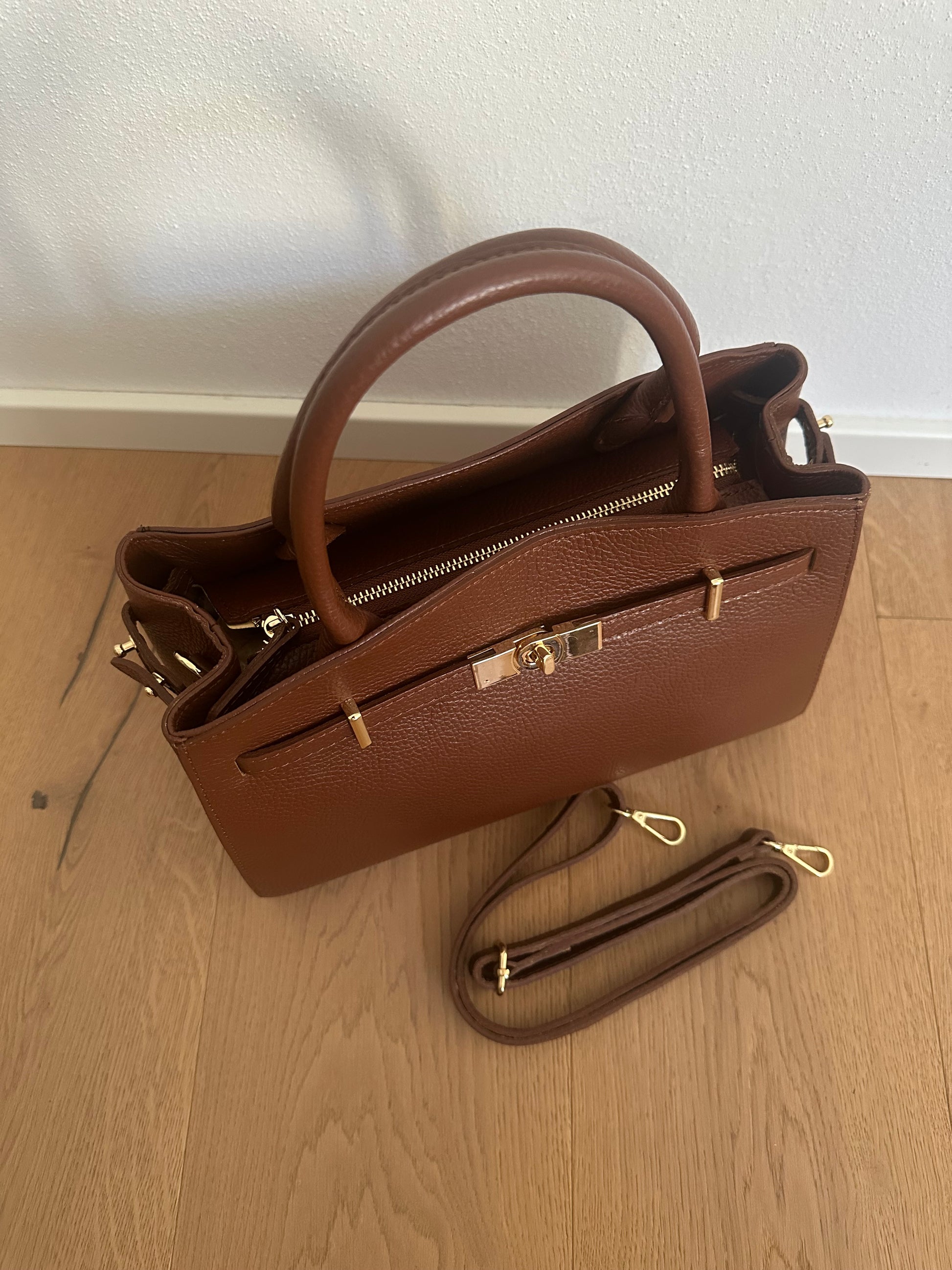 š¤Borsa con doppio manico in vera pelle Made in Italy.