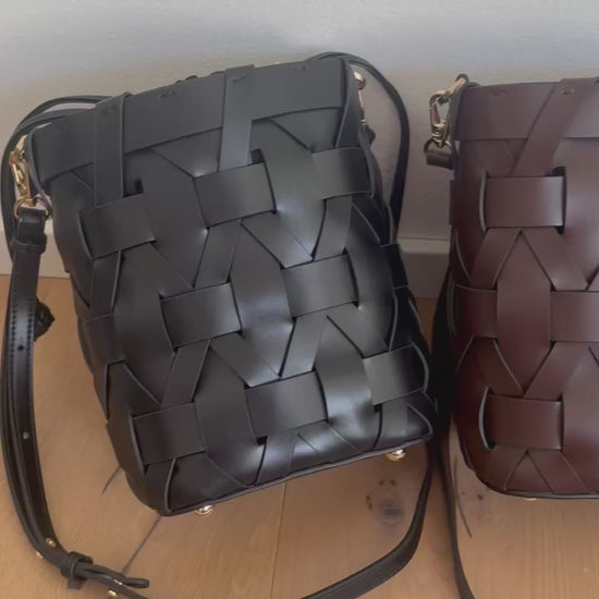 Borsa dal intreccio particolare in vera pelle liscia pregiatissima.