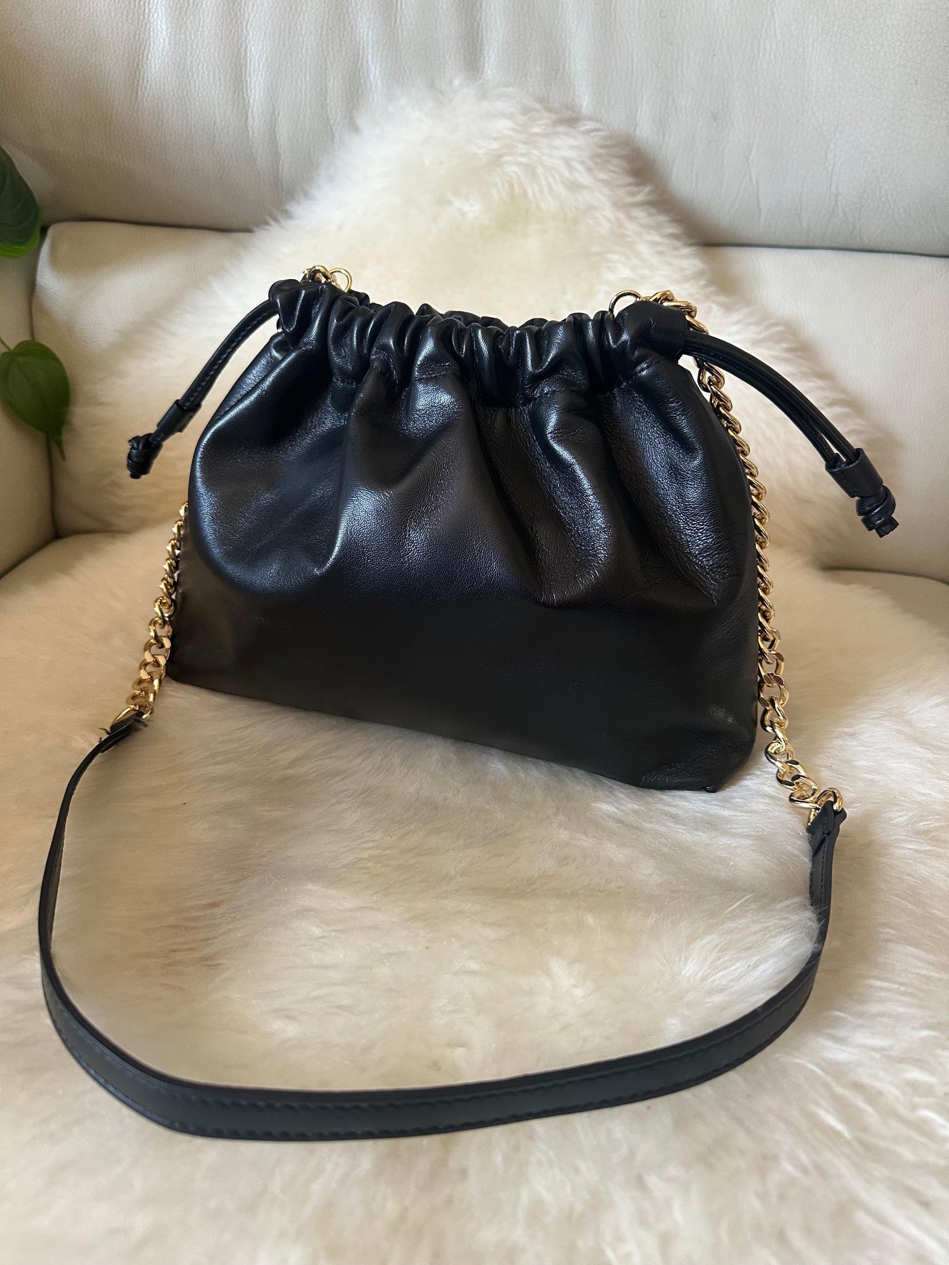 Semplice ma allo stesso tempo versatile e elegante, chiusura a coulisse e interno foderato in tessuto con tasca. Da portare sia a spalla a tracolla che a mano come una pouch.