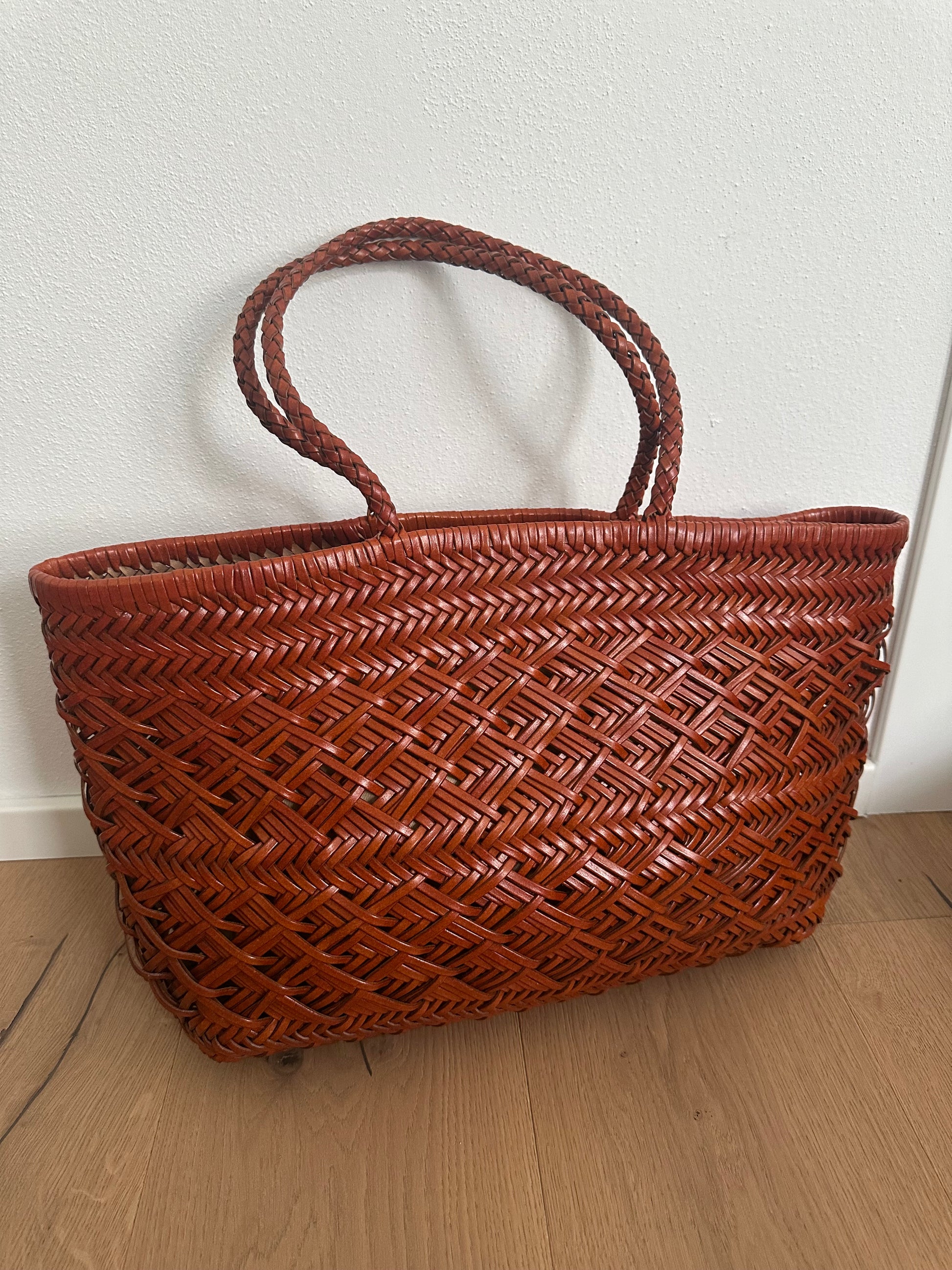 La borsa non ha cuciture ma é interamente intrecciata a mano in tutte le sue parti, manici compresi.