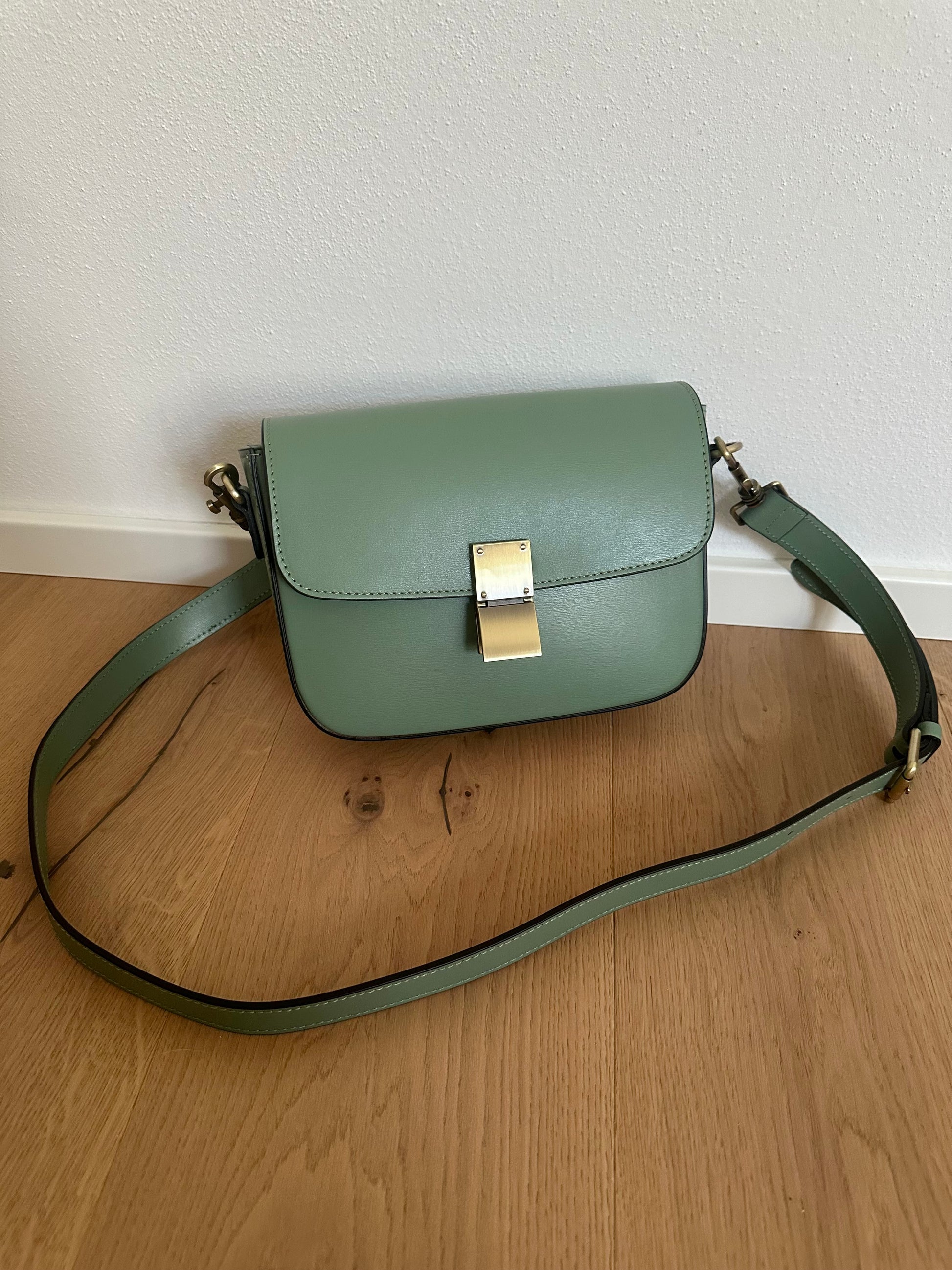 •The bag has a single lined compartment inside and a small zipped pocket.