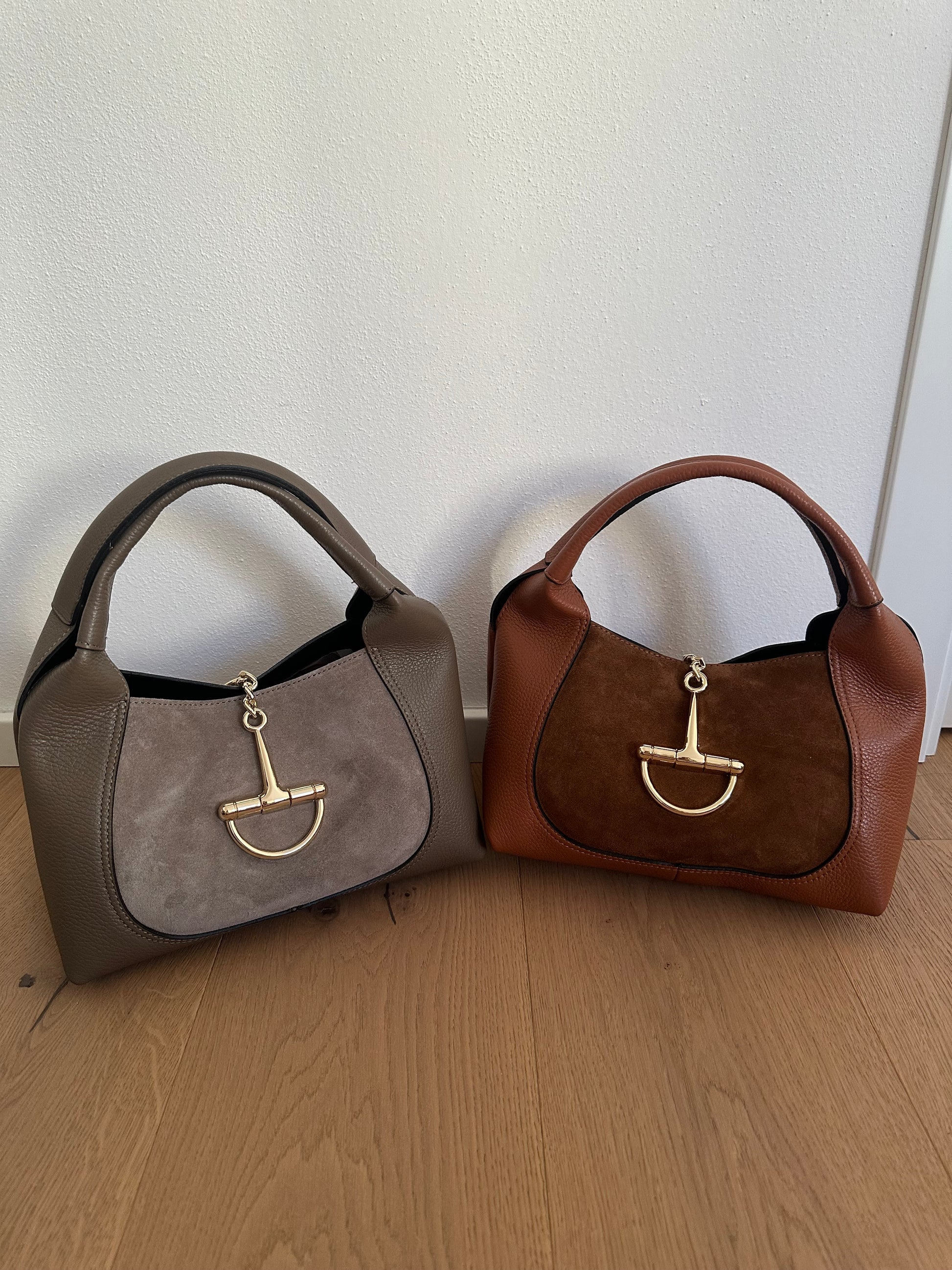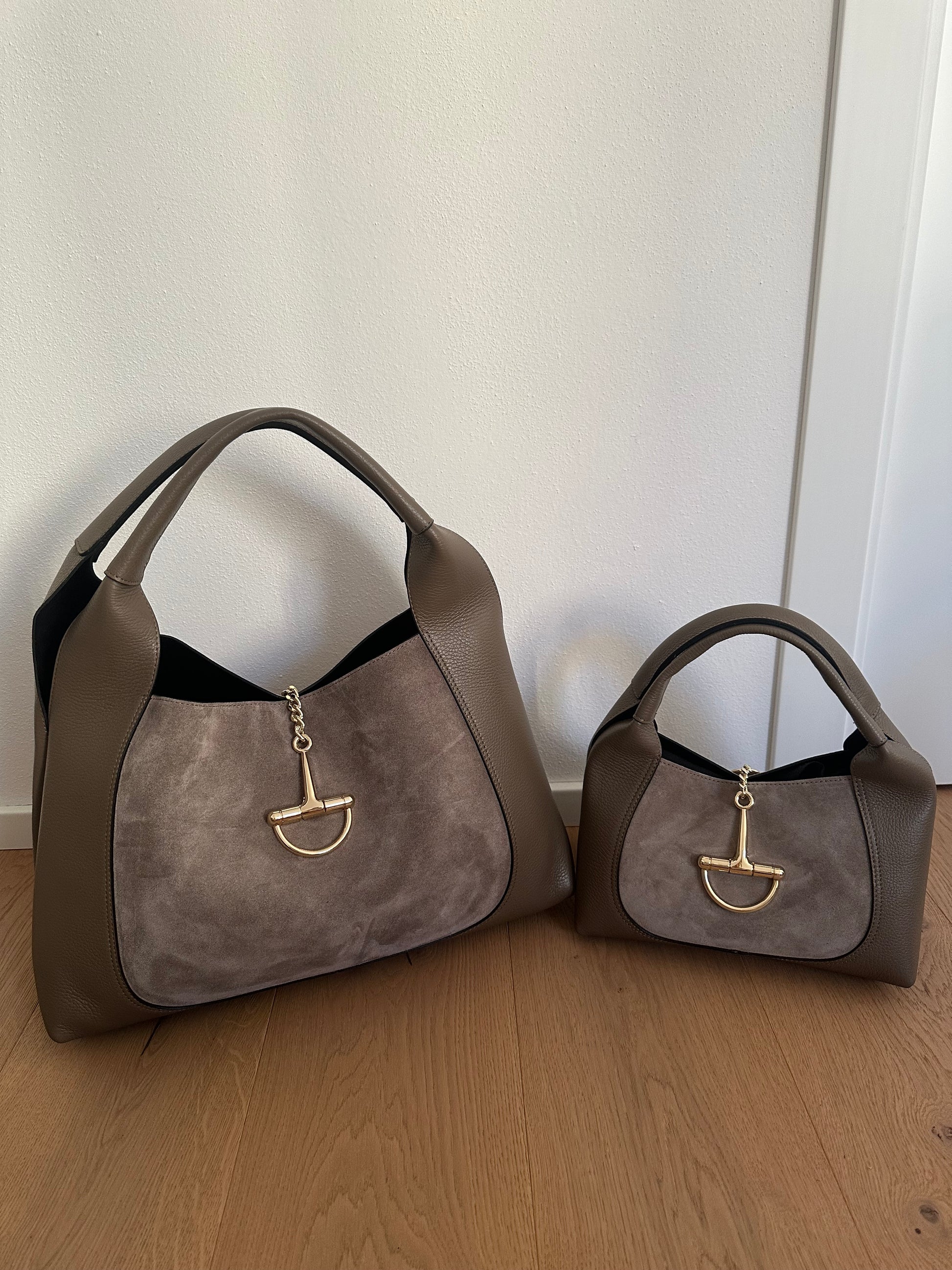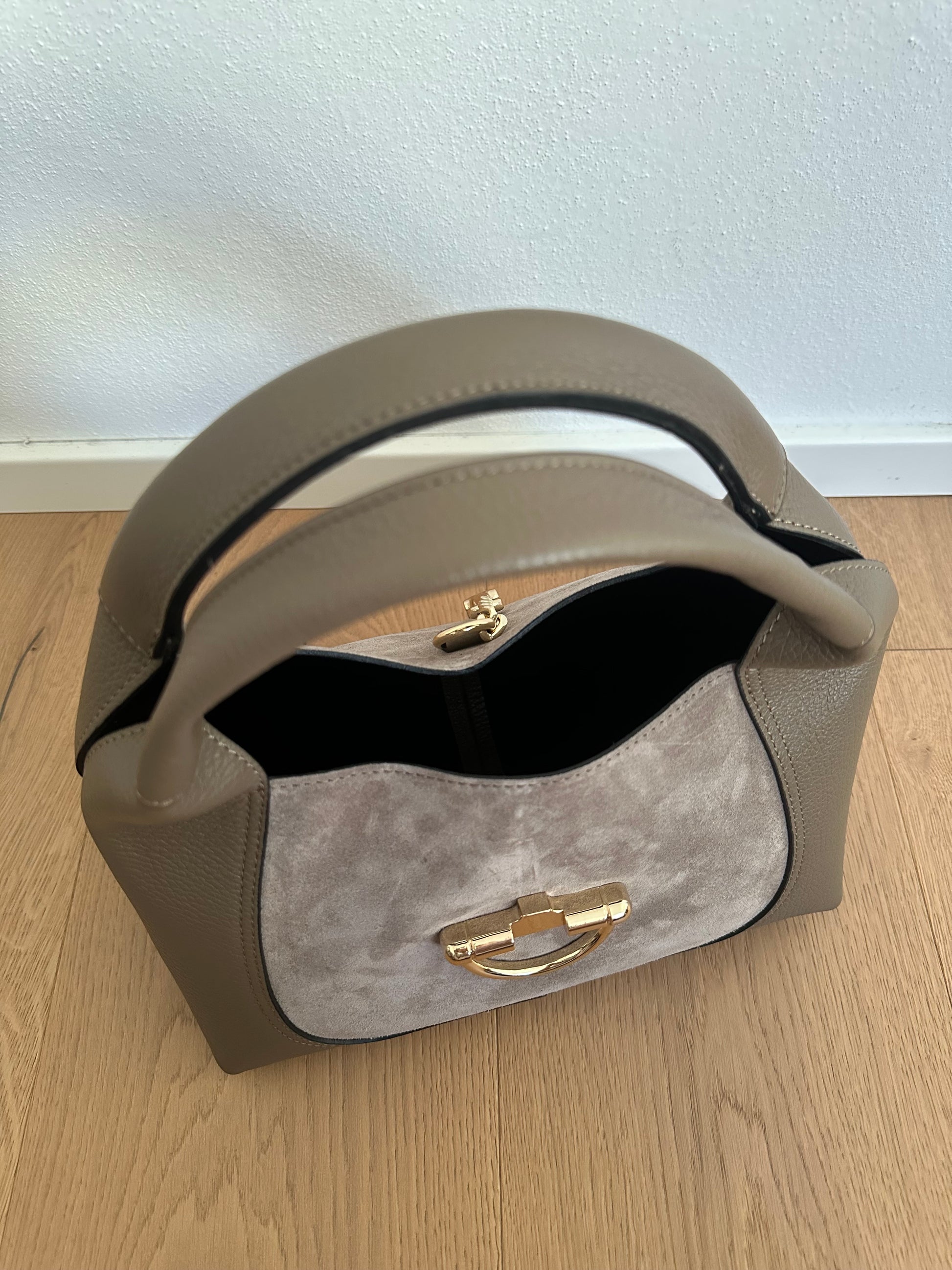 Borsa nella in vera pelle dollaro e vera pelle scamosciata morbidissima Made in Italy.