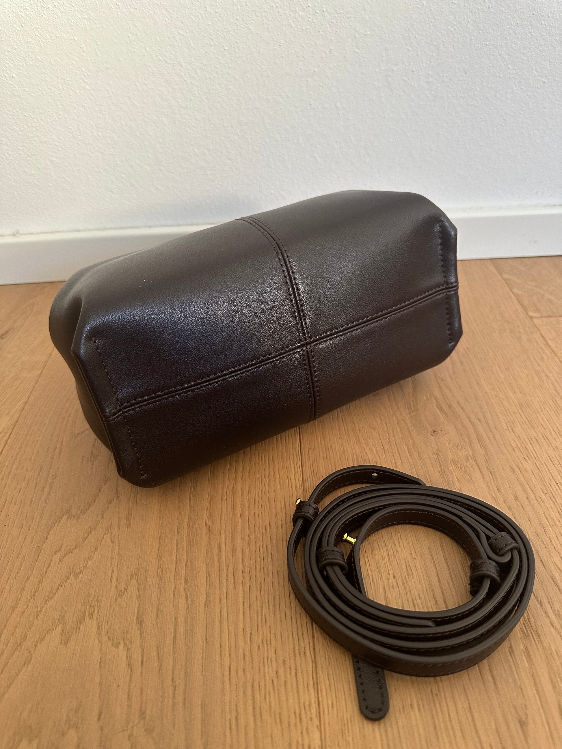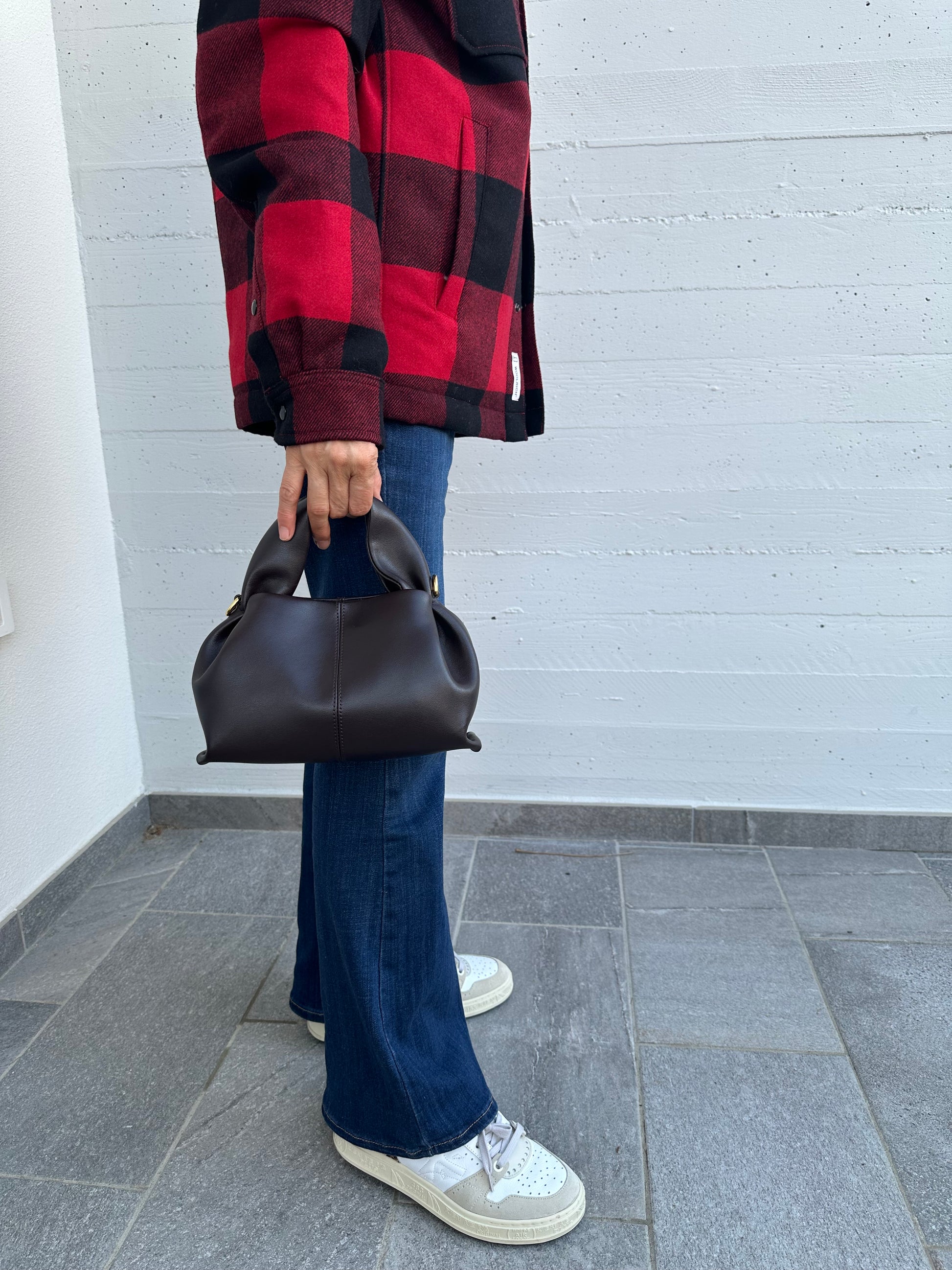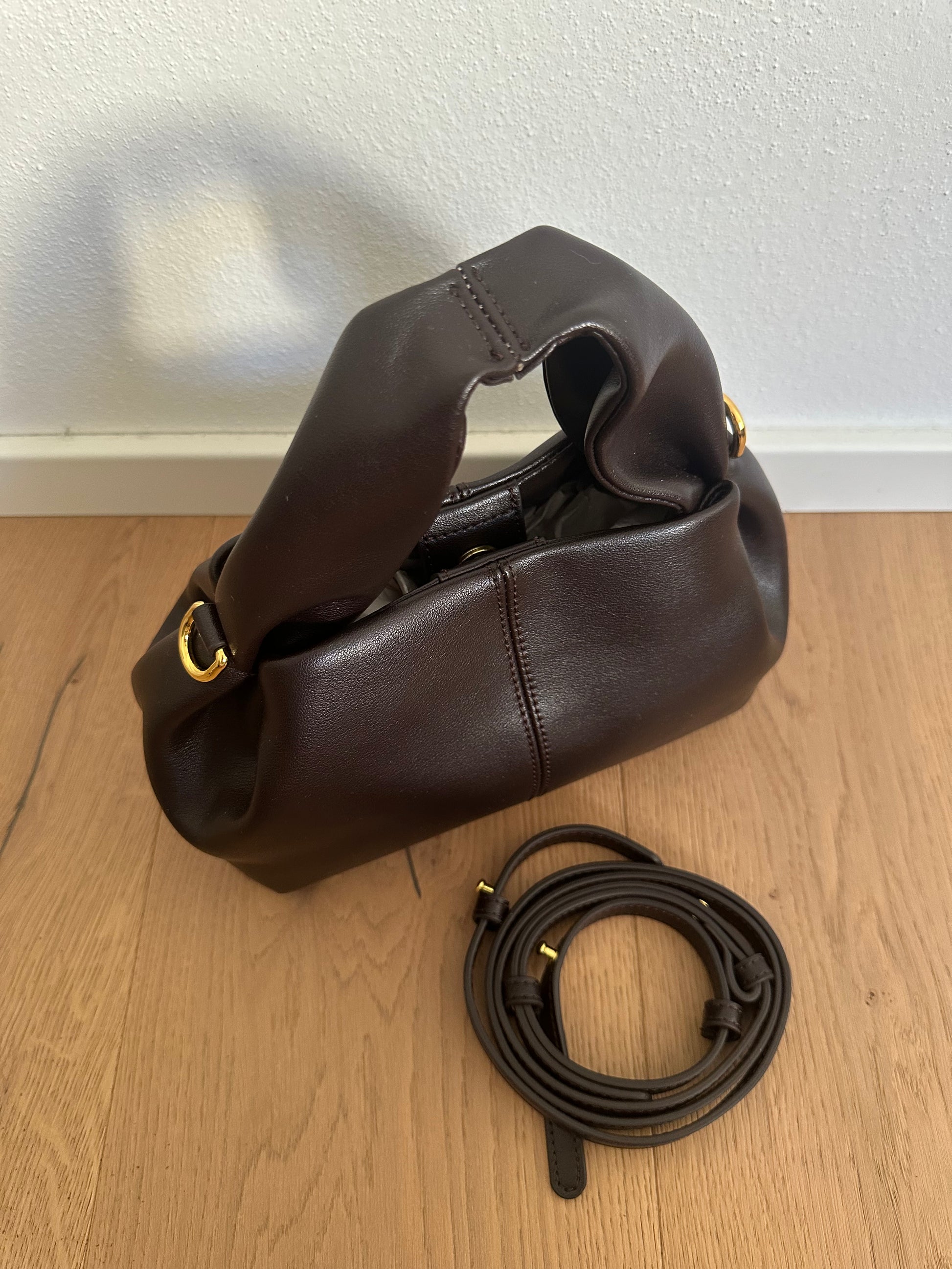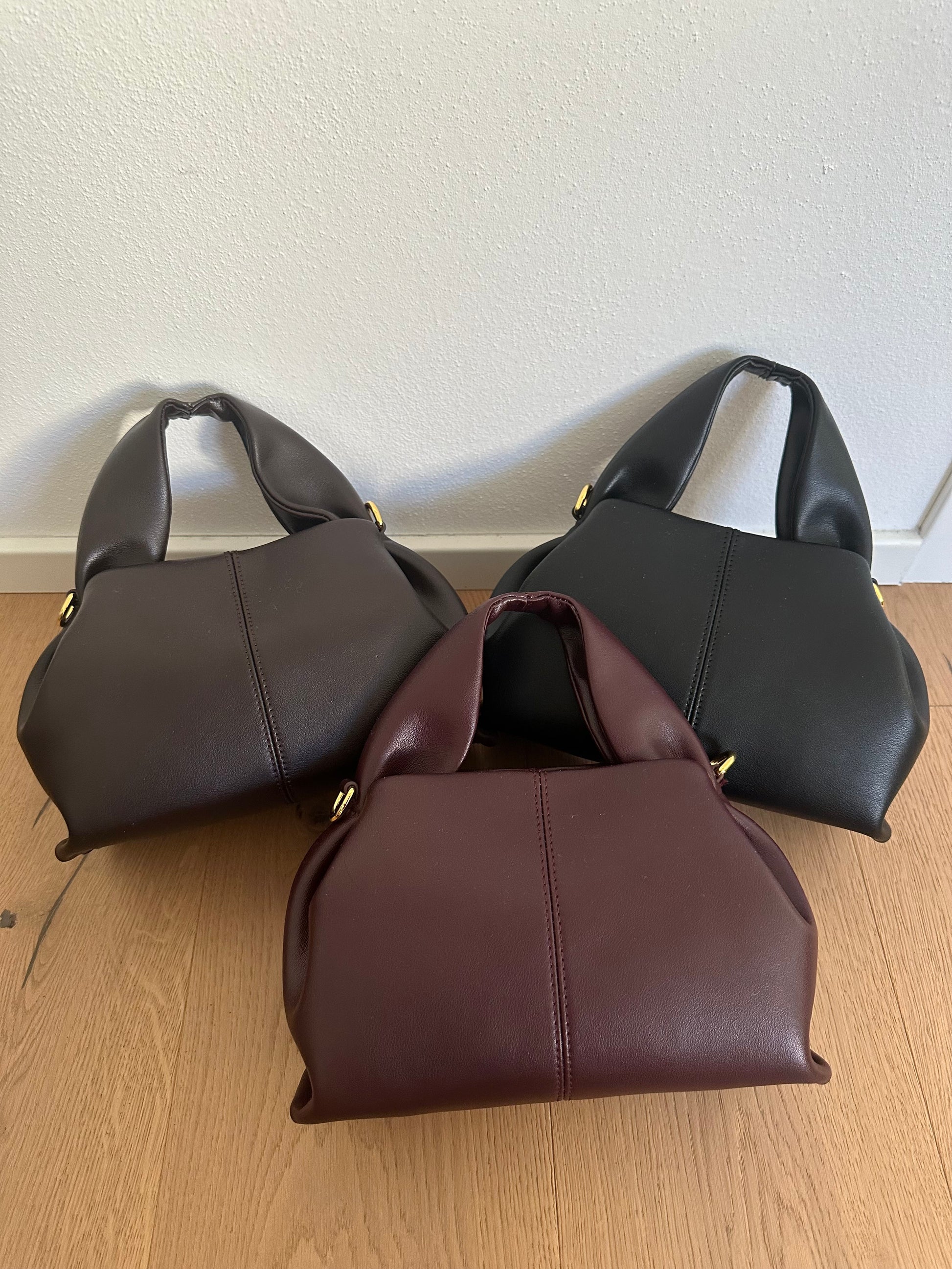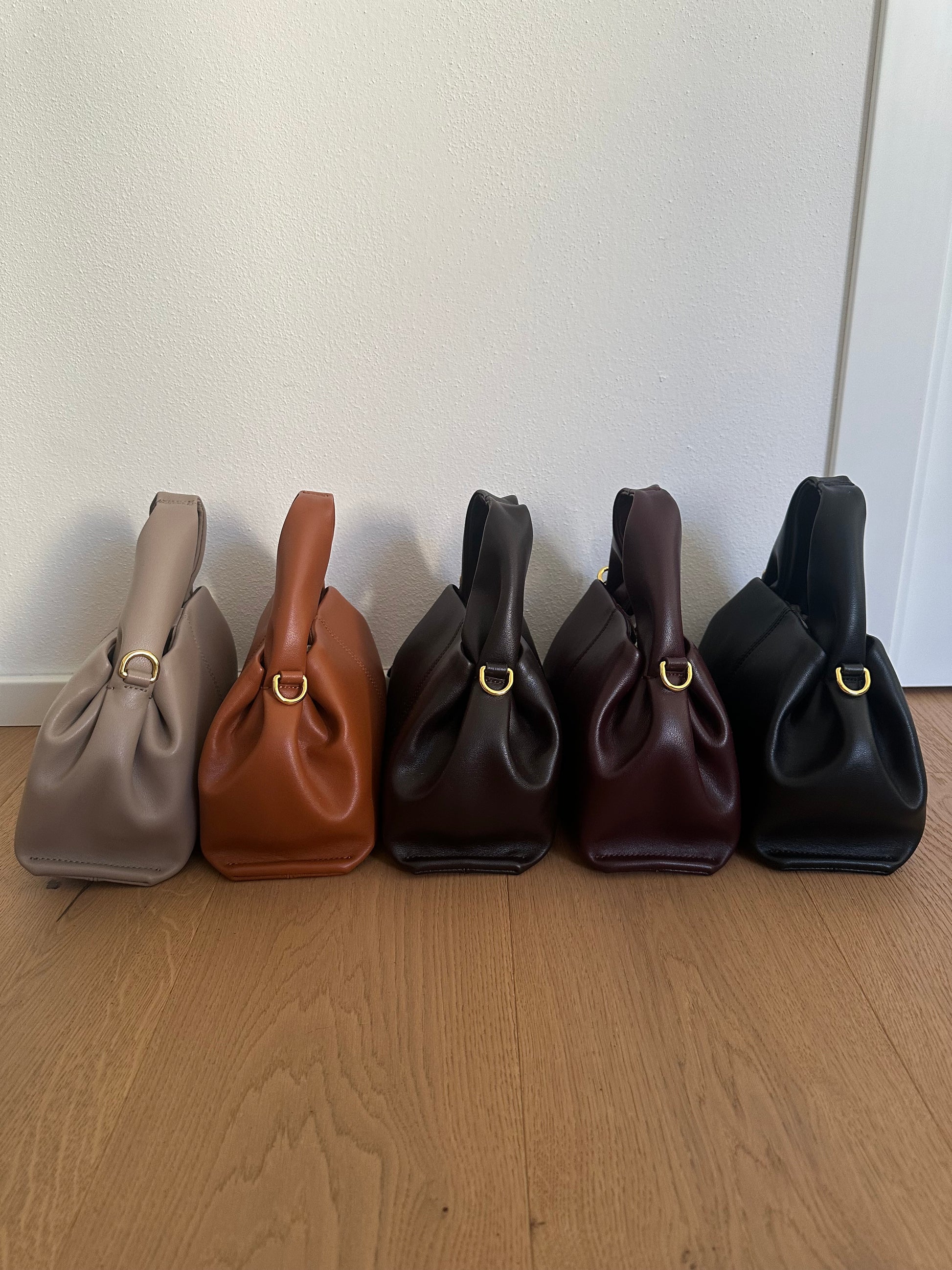 🍁Borsa dalla forma particolare con unico manico realizzata in vera pelle di vitello.