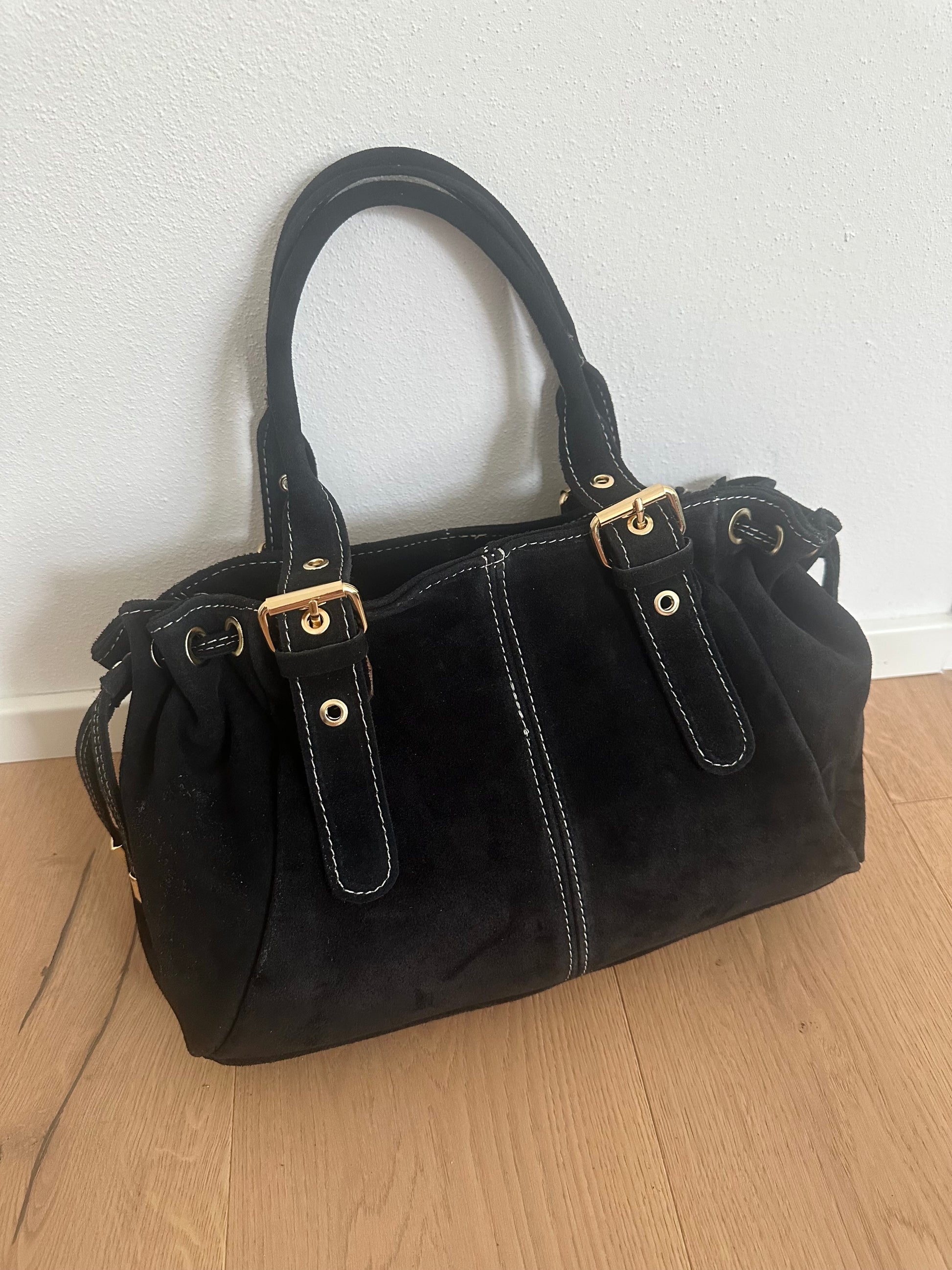 Borsa a spalla in vera pelle scamosciata Made in Italy.