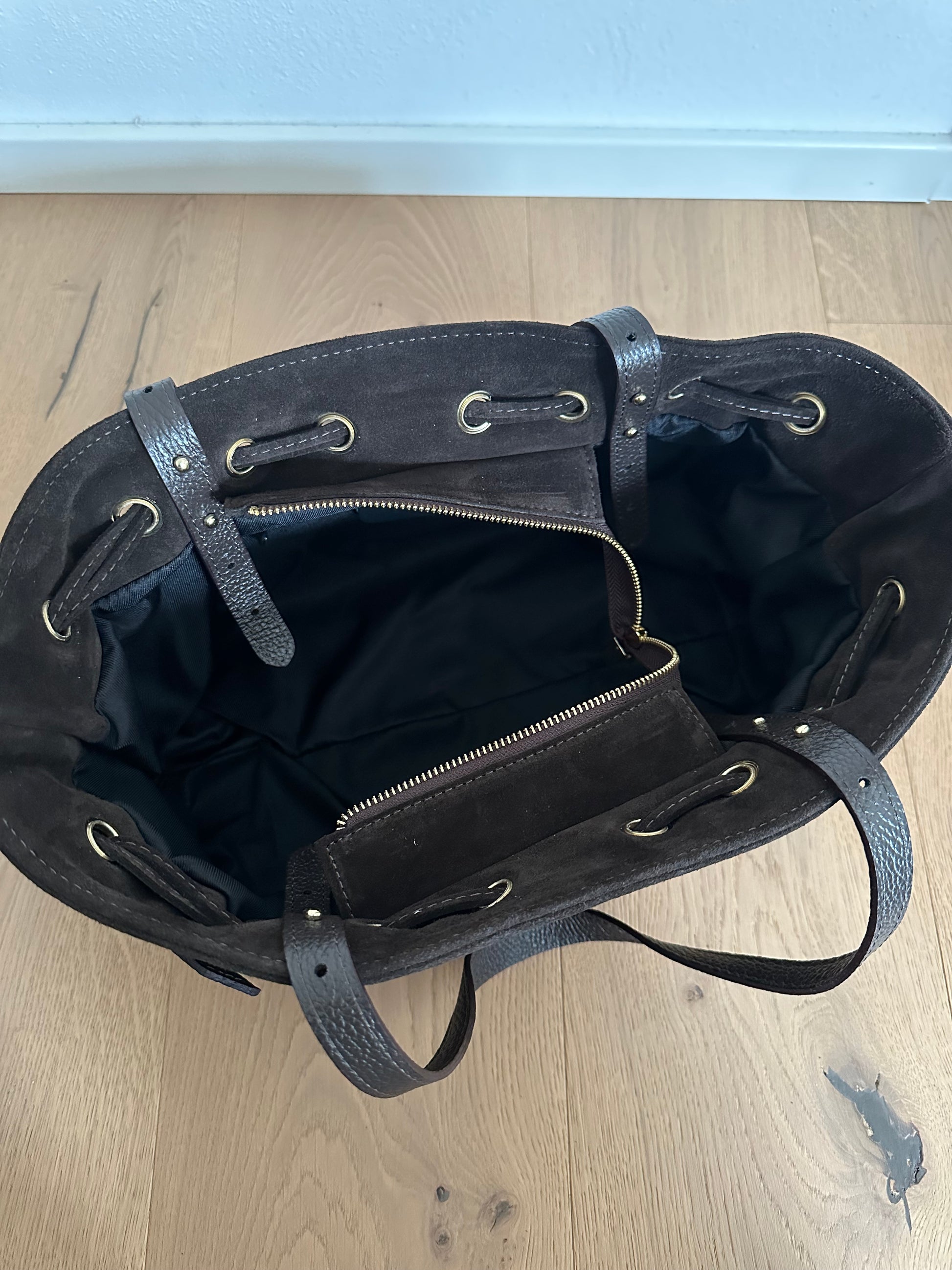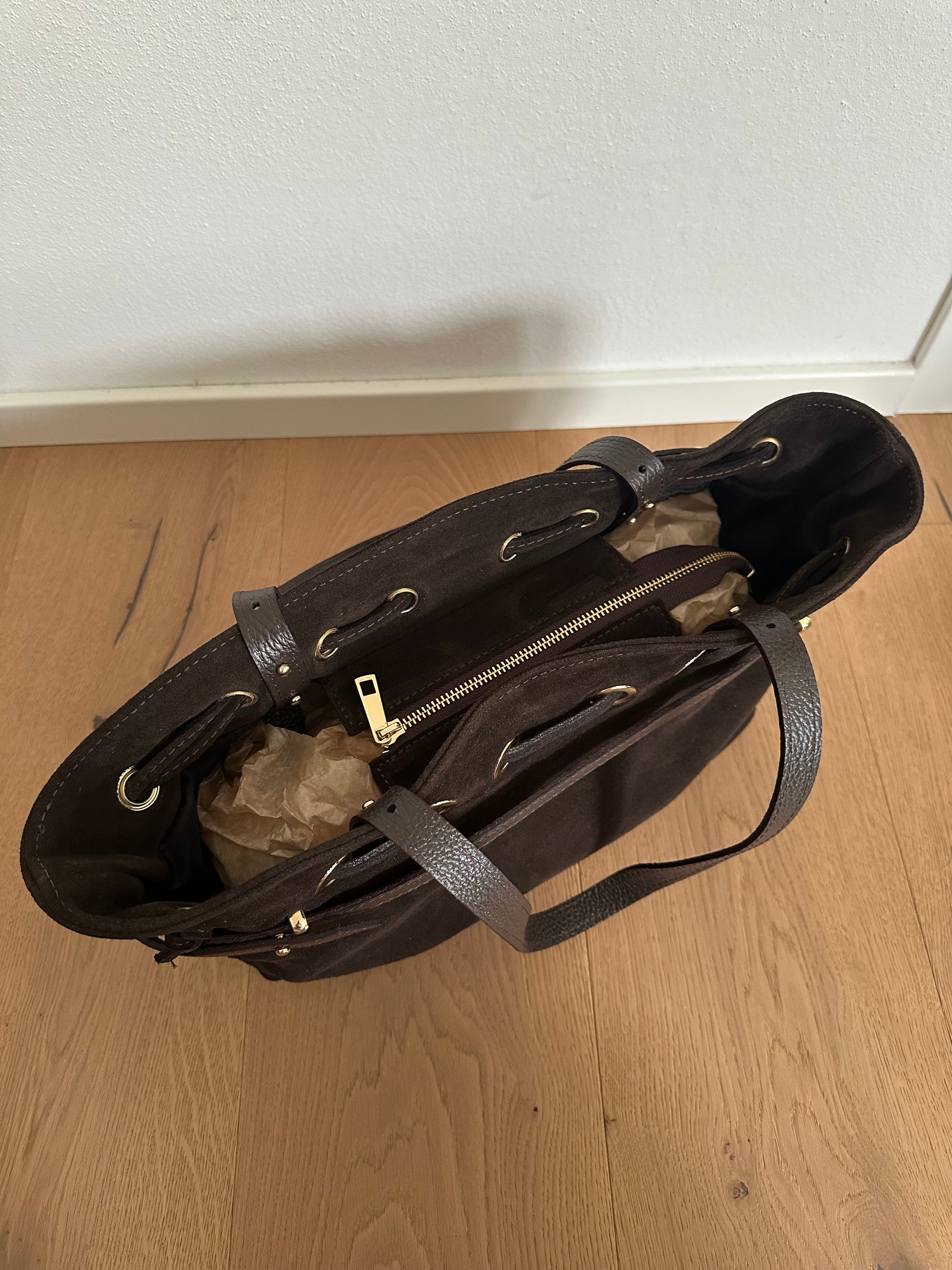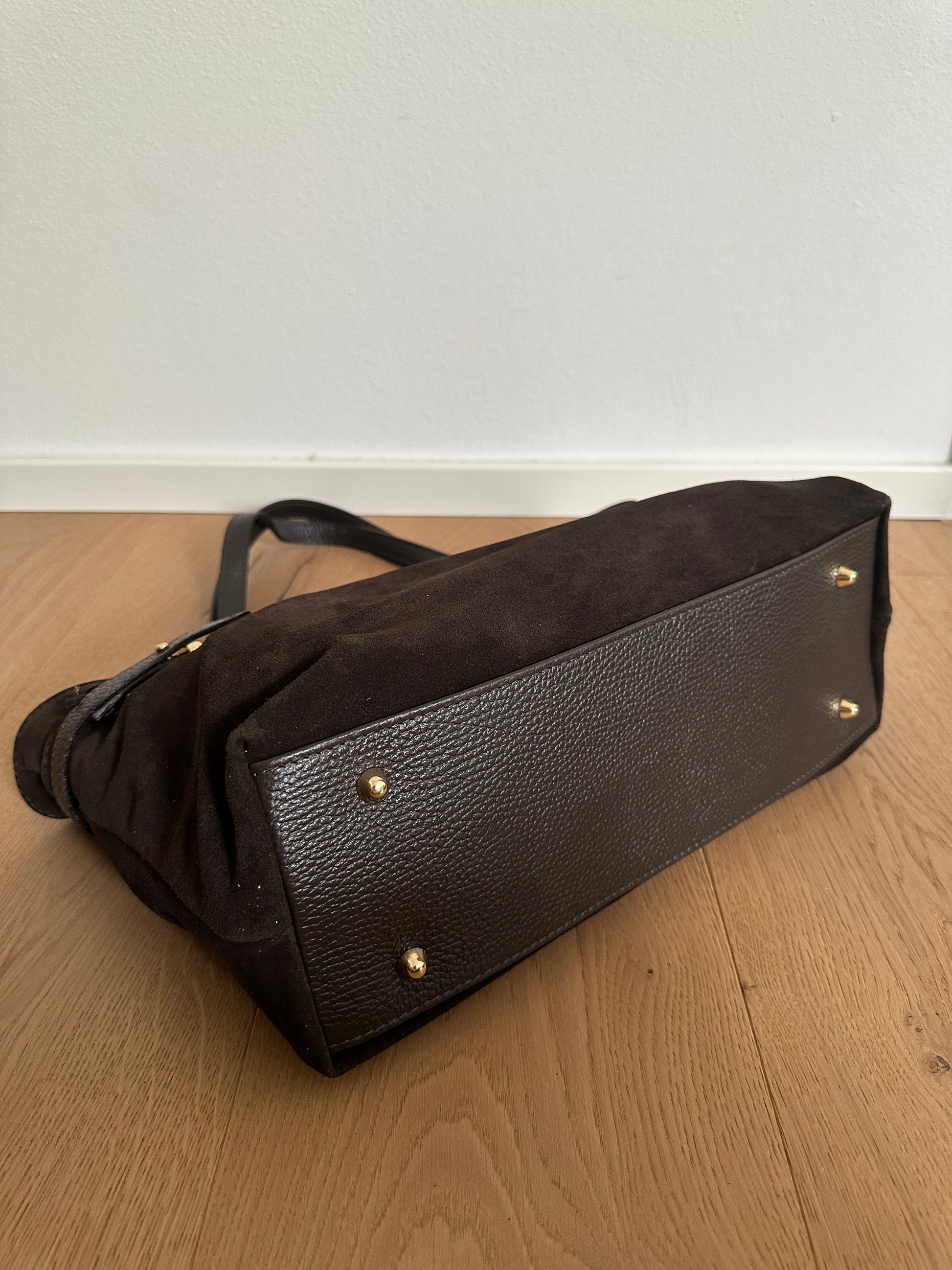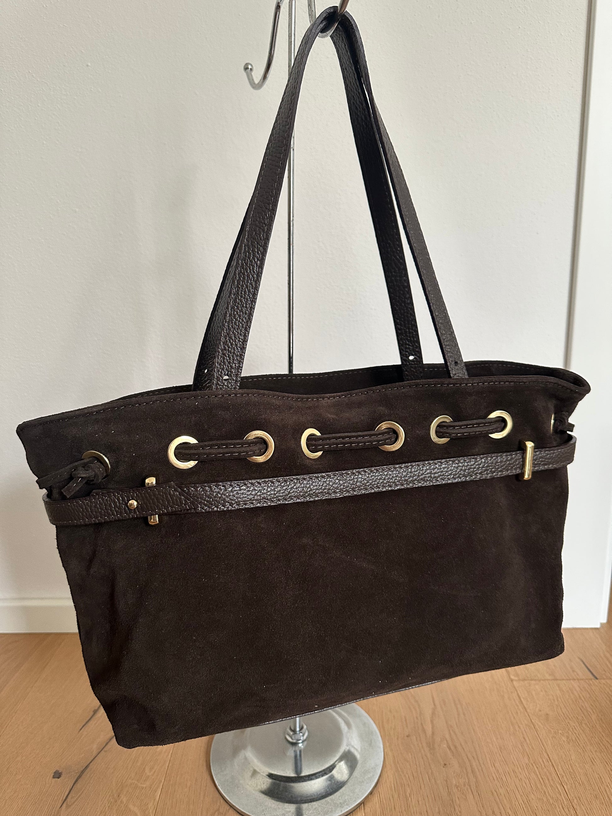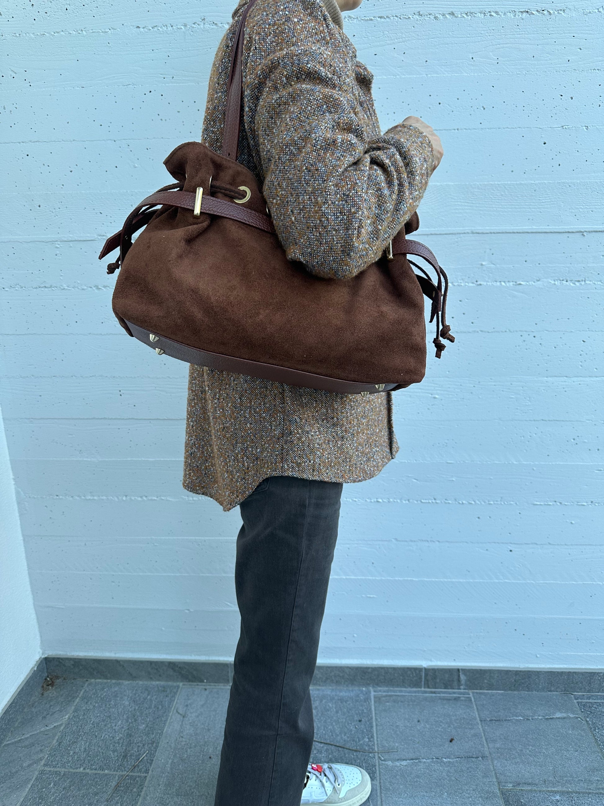 Borsa a spalla in vera pelle scamosciata con rifiniture in vera pelle dollaro Made in Italy.