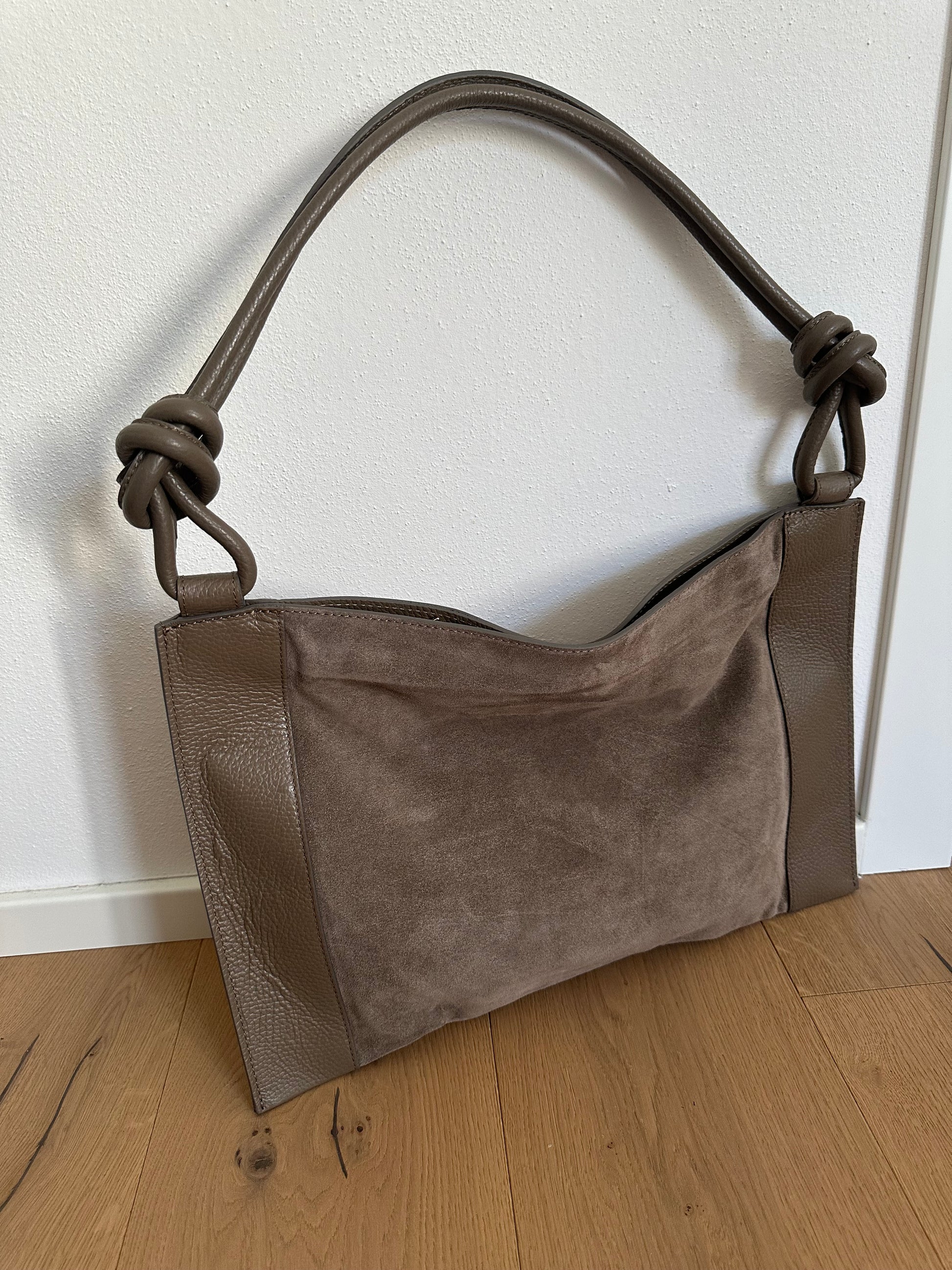 🤎Borsa a spalla in vera pelle dollaro e pelle scamosciata. Made in Italy.