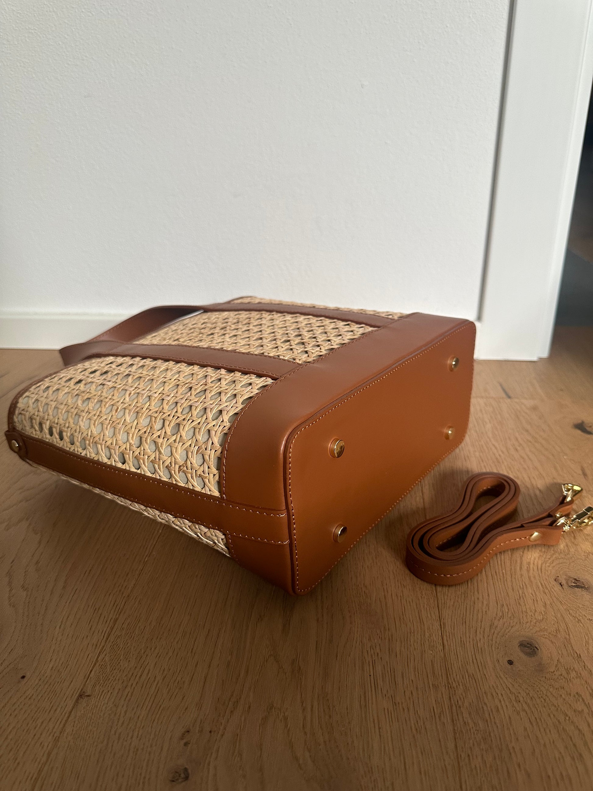 ⭐️Borsa tote realizzata in rattan e vera pelle liscia Made in Italy.