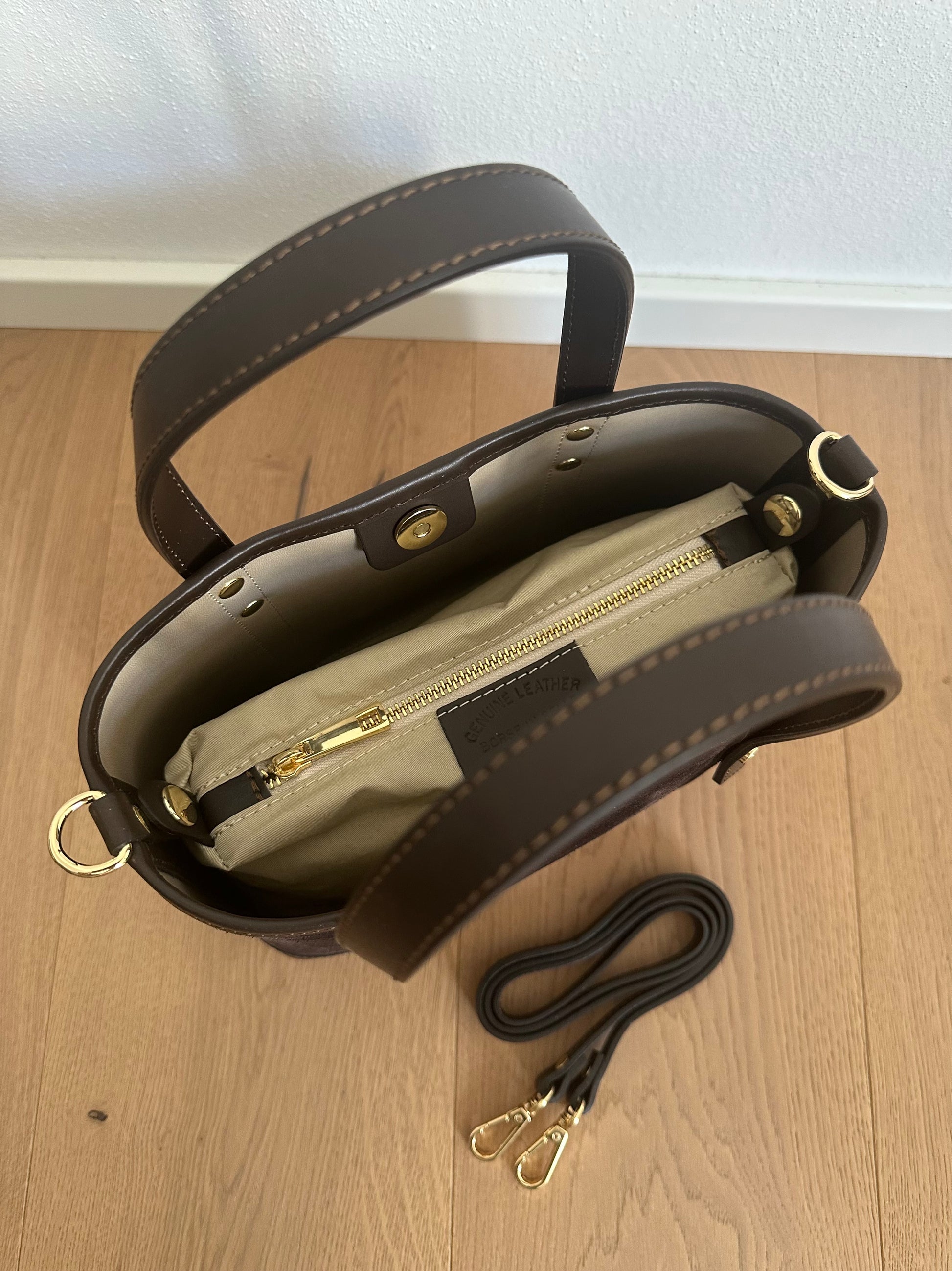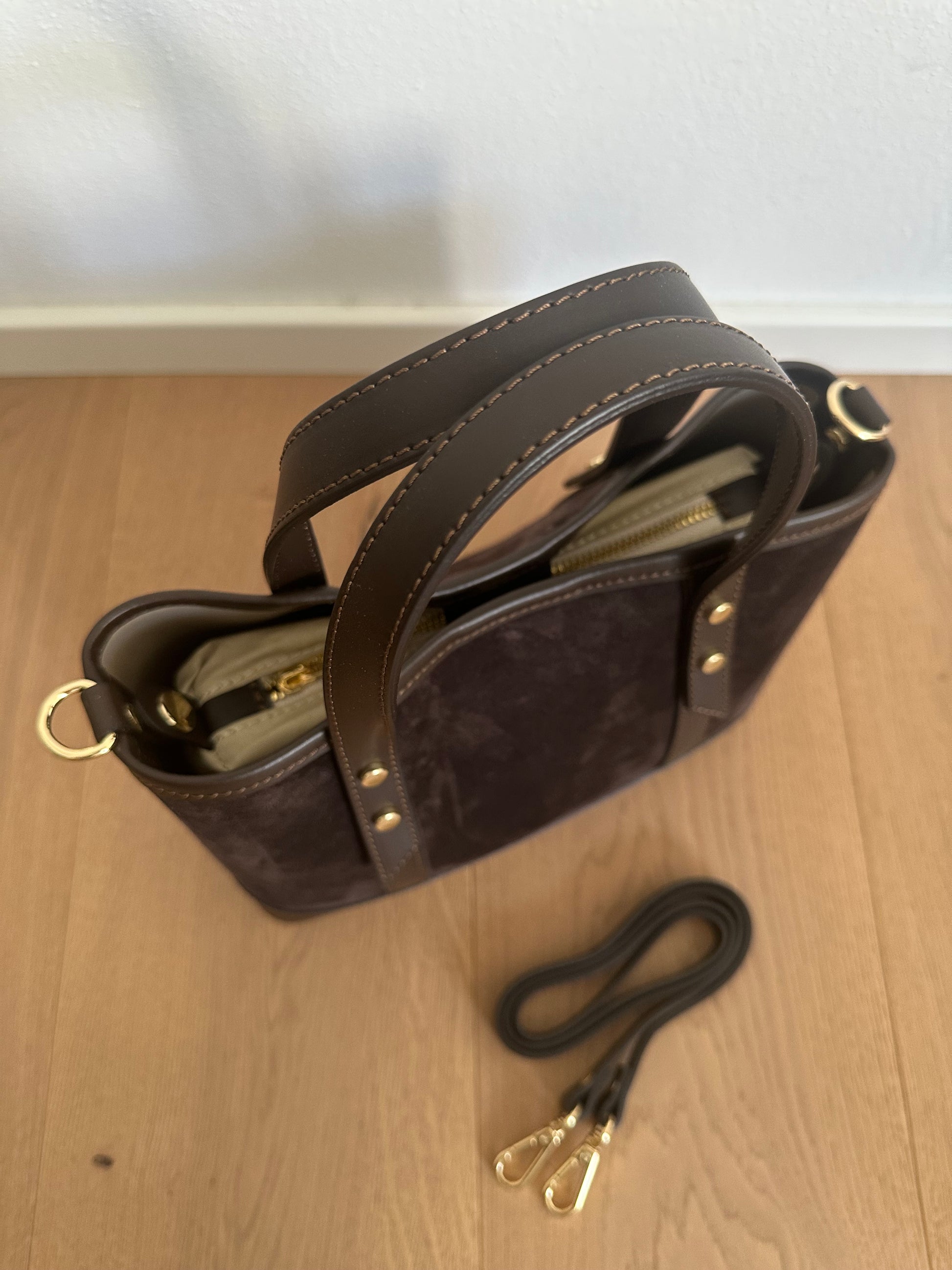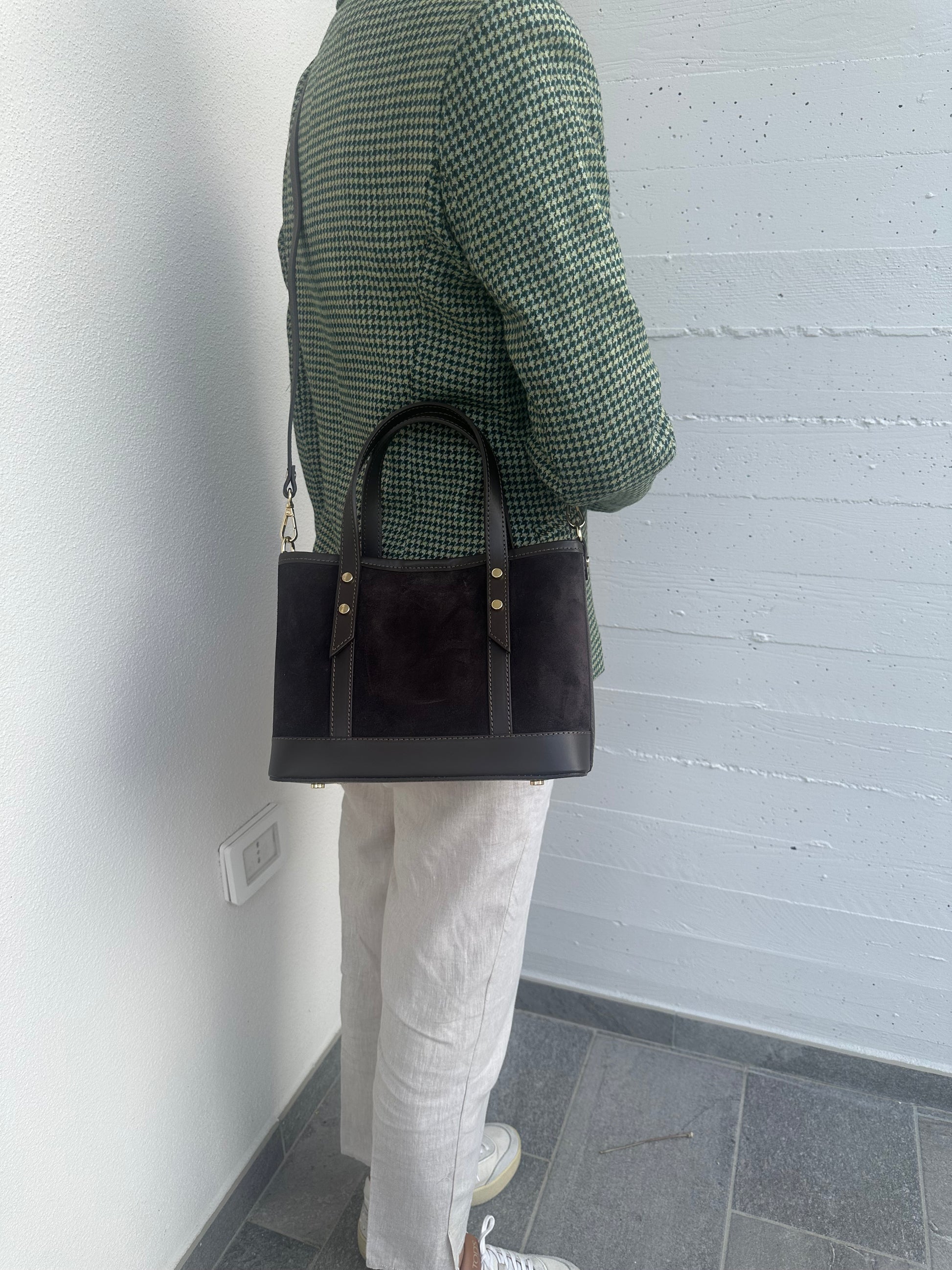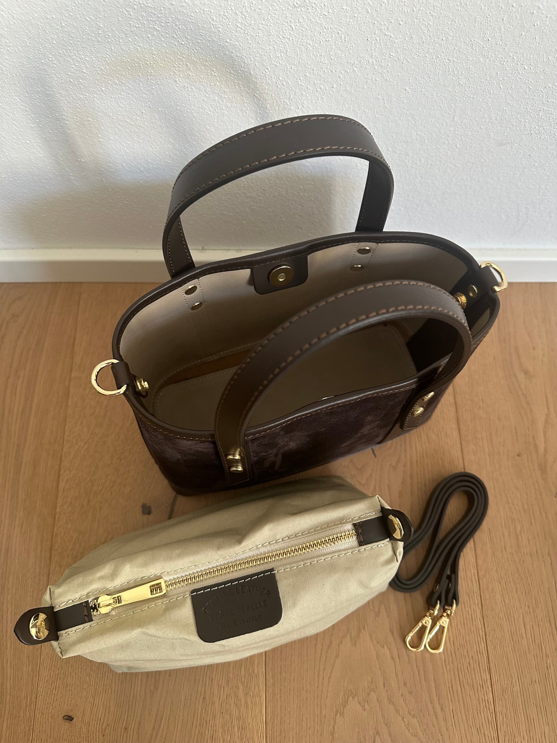 ⭐️Borsa shopper in vera pelle scamosciata e pelle liscia, realizzata interamente a mano in Italia.