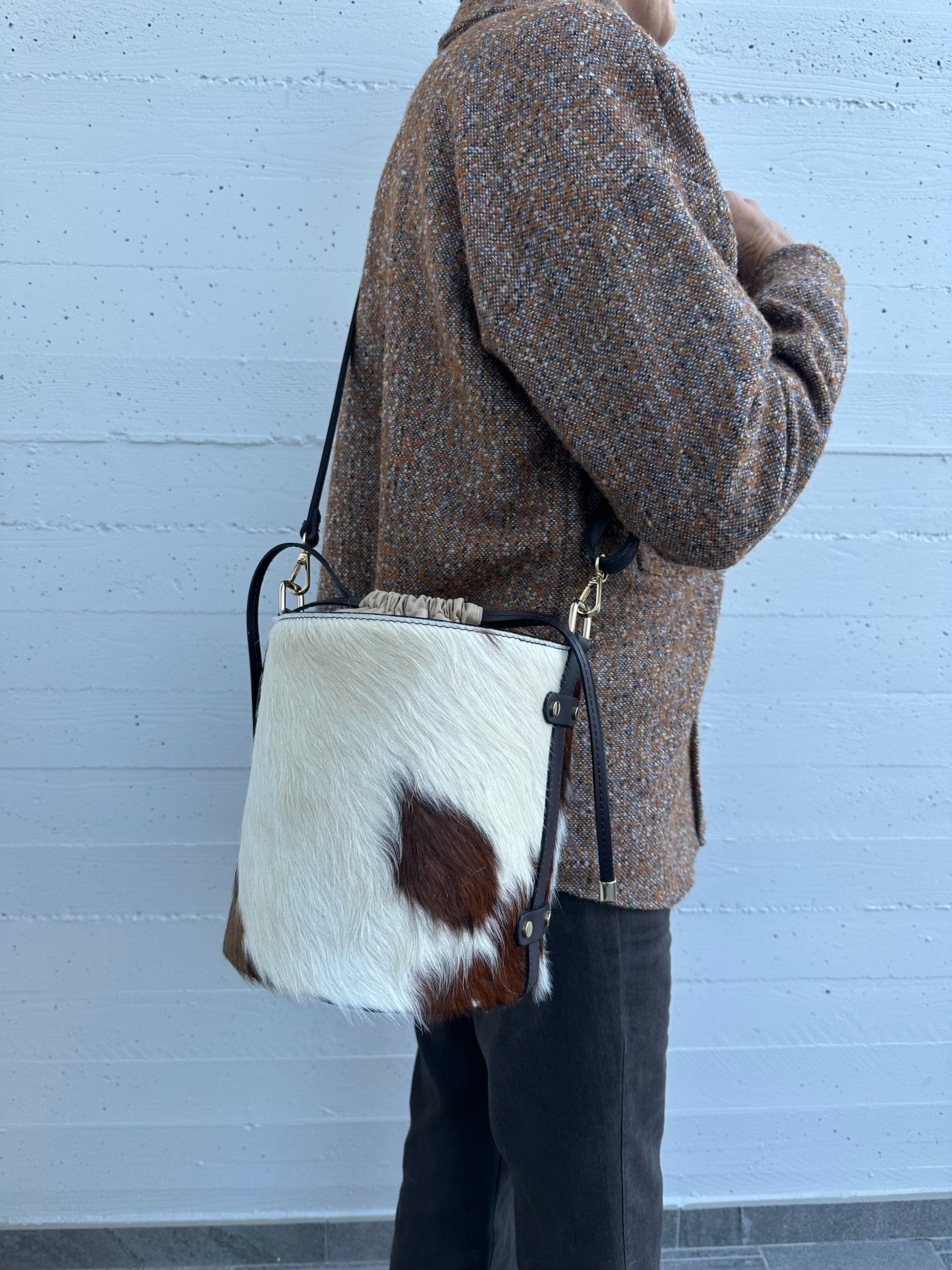 *Ogni borsa é unica nel suo genere, in quanto le parti in “cavallino” non posso essere uguali.